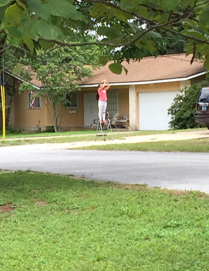 (7) A szomszédom felállt egy kislétrára, hogy közelebbről készíthessen fotót a napfogyatkozásról: