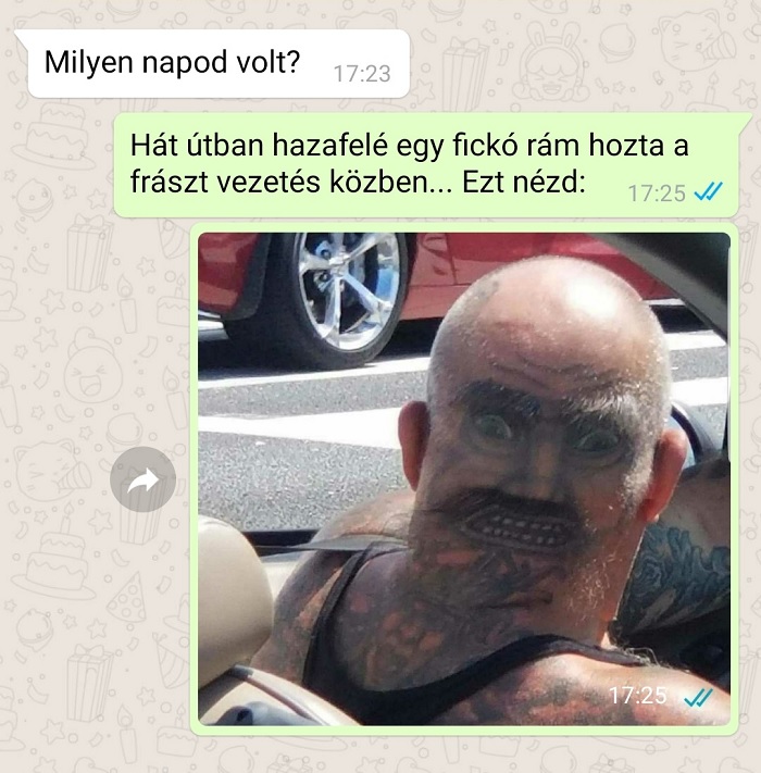 2. Próbáld meg elképzelni azt a szituációt, amikor vezetés közben oldalra pillantasz, és ő „bámul” vissza rád a melletted lévő autóból.